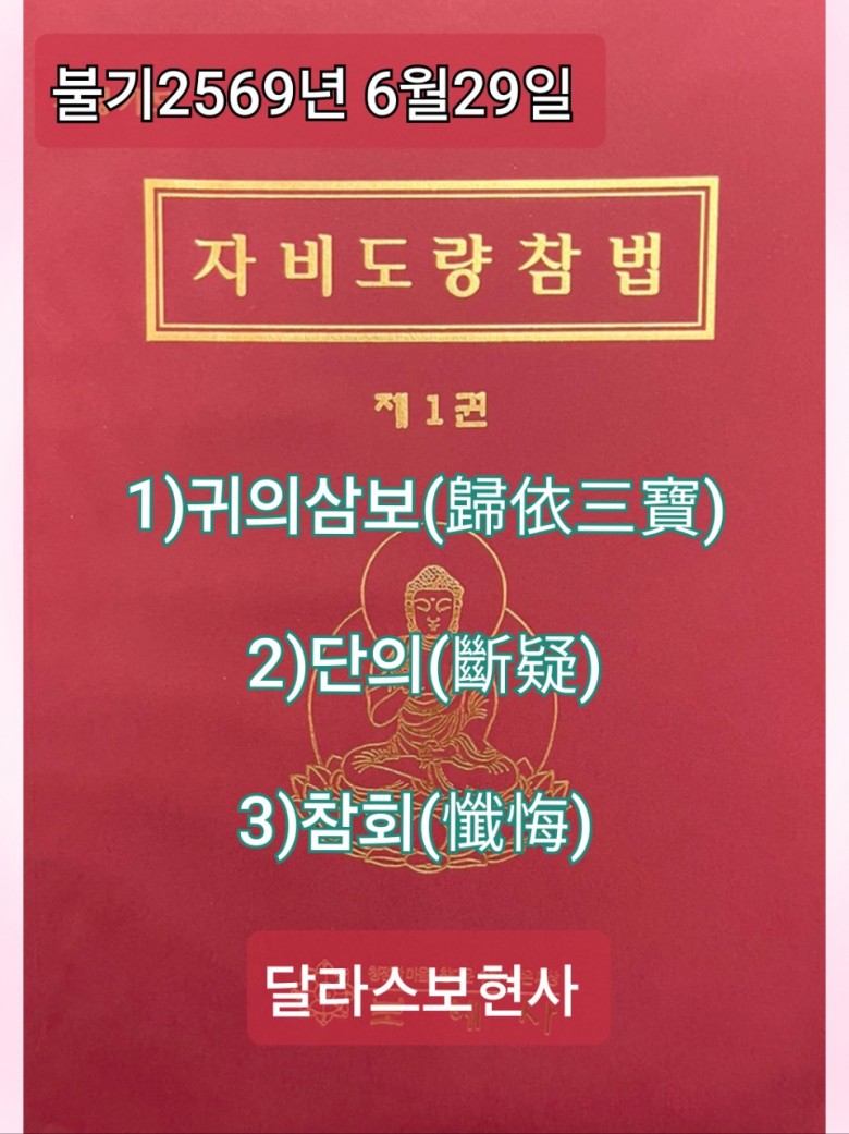 자비도량참법을 받자와 행하오며 지극한 마음으로 삼세 부처님께 귀의하나이다